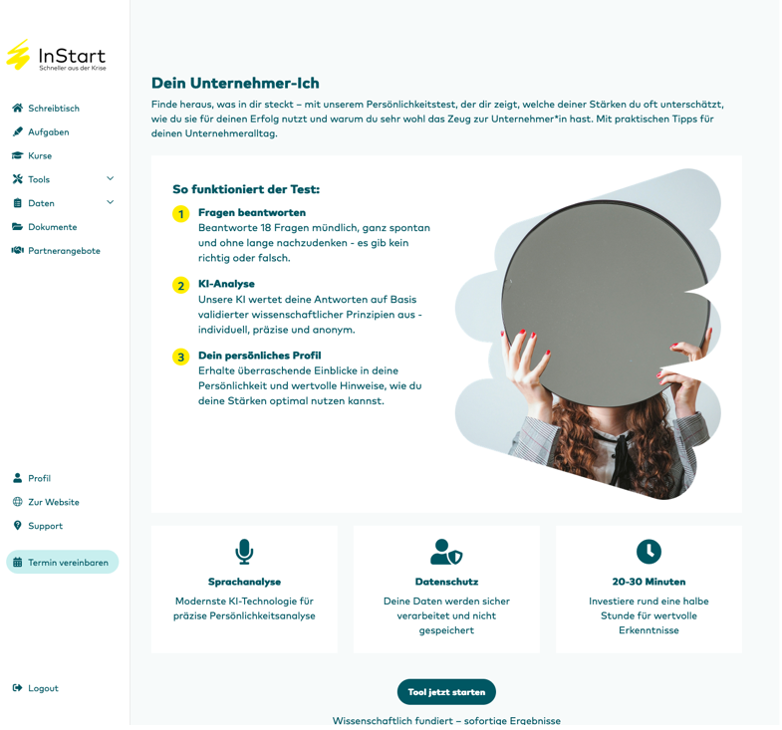 Der Persönlichkeitstest ist bereits über InStart verfügbar, unter dem Namen „Unternehmer-Ich“.